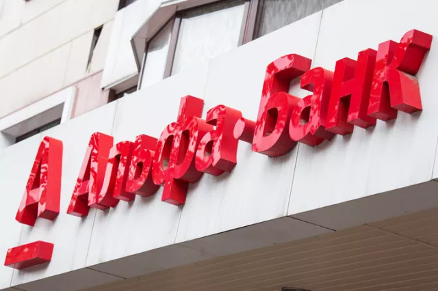 Вывеска "Альфа-Банк" выполнена из объемных букв с лицевым свечением и бортами ПВХ. Подсветка светодиодные кластеры. Монтаж побуквенный.