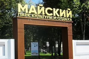 Вывеска Майский Парк Культуры и Отдыха собрана из объемных букв с лицевым свечением и бортами из ПВХ-профиля. Фронтальная поверхность оклеена транслюцентной пленкой. Подсветка светодиодные кластеры.